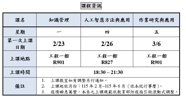 114學年度下學期推廣教育碩士學分班 上課通知暨學員須知